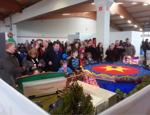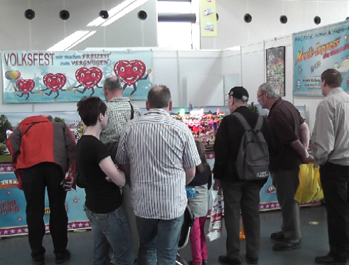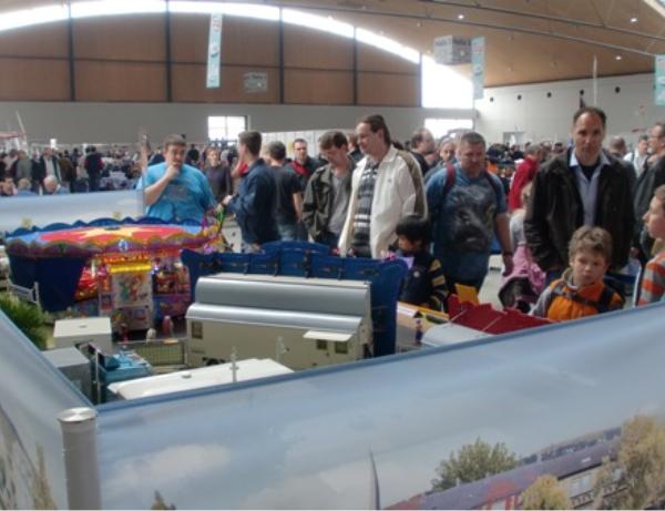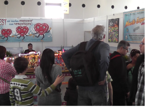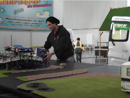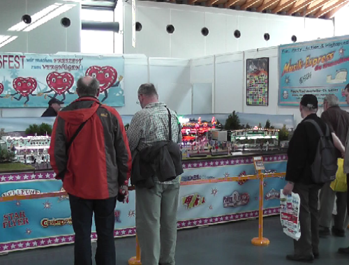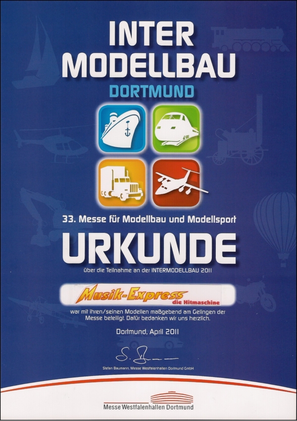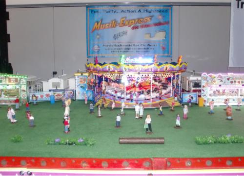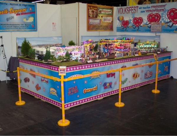 Wir freuten uns auf Euer großes Interesse und zahlreiches Erscheinen!Unser Stand Nr.: 4334 in der -Arena22. März bis 25. MärzModellsport pur gab es vom 22.-25.März in den Messehallen der Messe Karlsruhe zu erleben. Annähernd 50.000 Besucher kamen trotz Kaiserwetter, um in die Welt der Modelle einzutauchen.Erstmals wurde von den Ausstellern ein reger Anstieg französischer Besucher registriert, womit sich der Bekanntheitsgrad der „Faszination Modellbau“ bei ihrer dritten Durchführung in Karlsruhe nun auch über die nahe Landesgrenze hinweg ausgebreitet hat.Die „Faszination Modellbau“ bot nicht nur in ihrer Vielfalt das ganze Spektrum des Modellsports und der Modelleisenbahn, sondern auch eine hohe Qualität.Quelle: Messe Sinsheim GmbHDer Musik-Express ist nun soweit aufgebaut!Tisch nun vorbereitet für den Aufbau der ModelleBeginn des Aufbaus der ModelleAnbringen der Verkleidungen und BannerAusstellungstisch-AufbauAusstellungstisch-AufbauBegeisterung pur!Aufbau der ReihengeschäfteAuch die Eisenbahner sind sehr interssiert!Echt tolle Sache!Der Chef beim rekommandieren“Bitte einsteigen und los geht`s!”Der ModellkirmesplatzViel Andrang am SamstagUnd auch Sonntags war voll viel los!