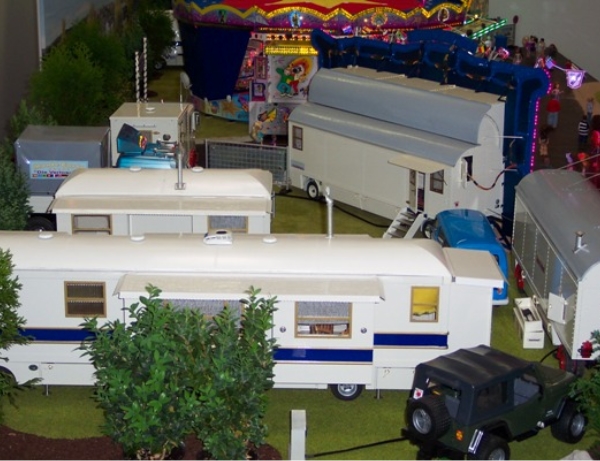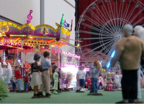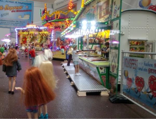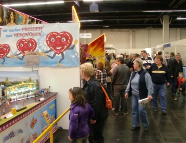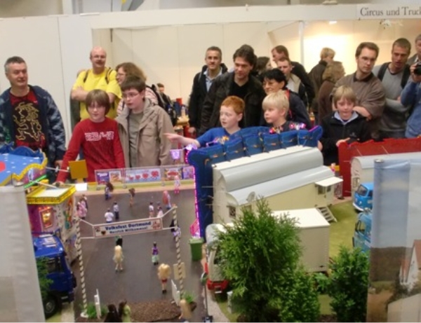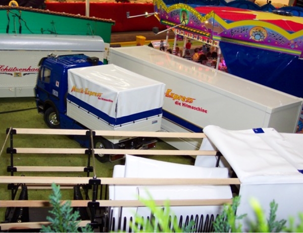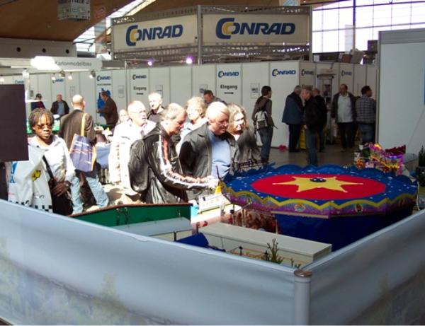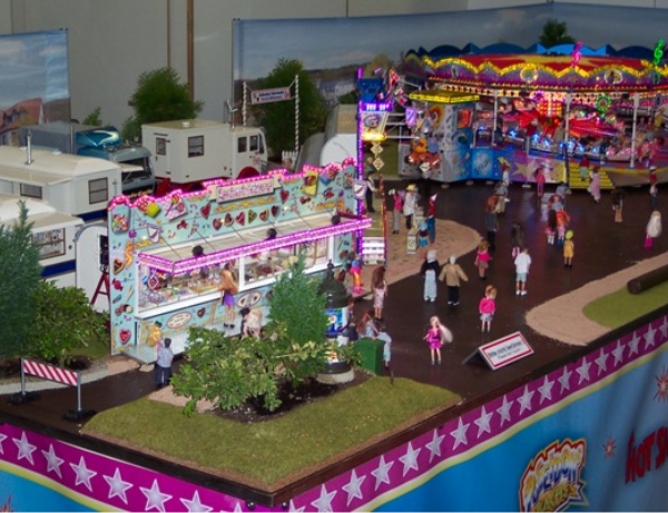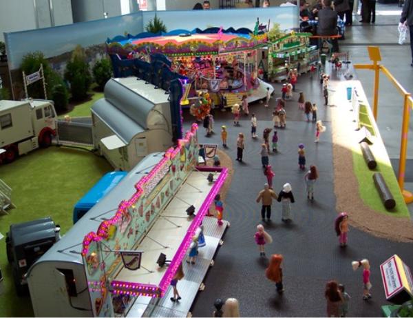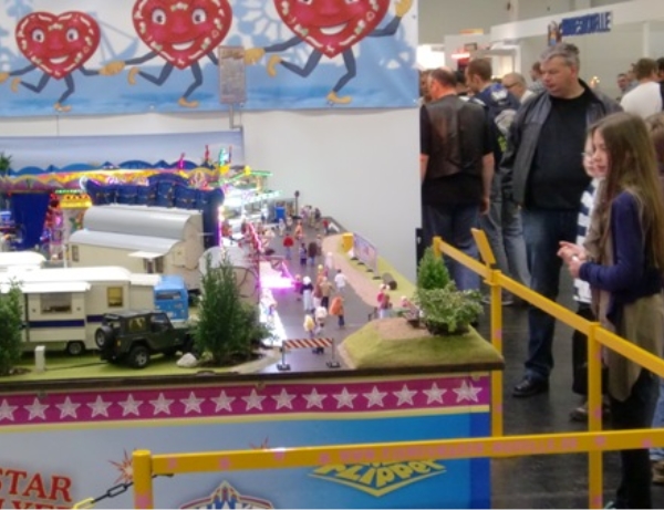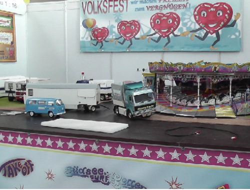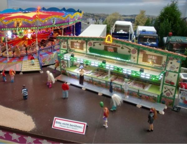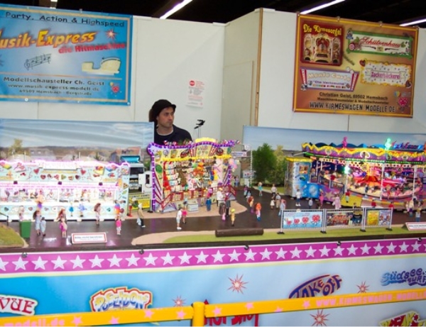 Mein Messestand in Halle 3, Stand Nr.: 3018Großer Modellrummelplatz mit den Kirmeswagen auf der 17. Faszination Modellbau in Karlsruhe
